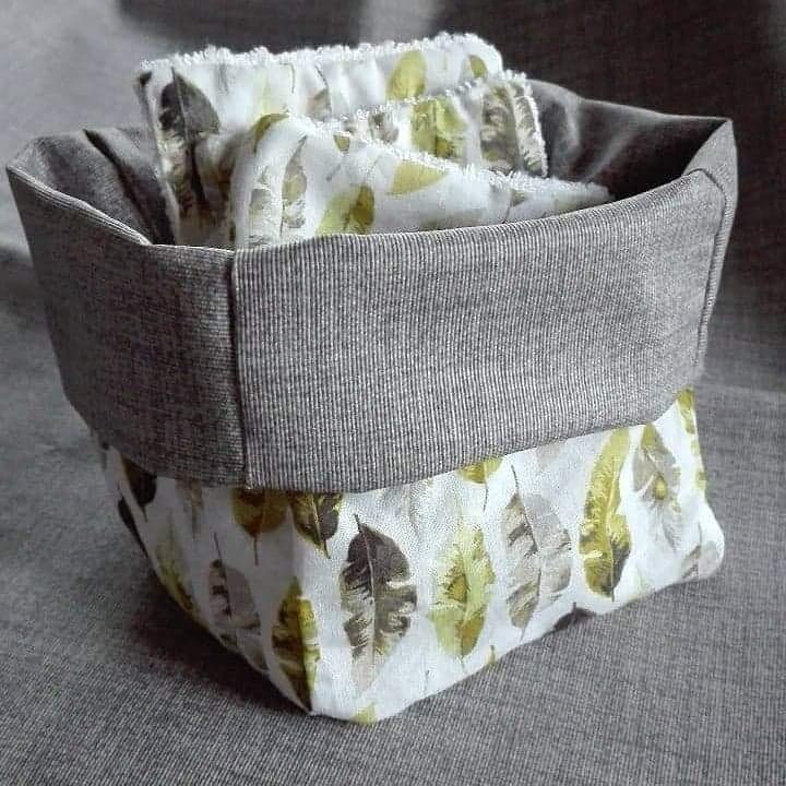 Très faciles à faire, ils sont devenus un incontournable dans ma salle de bain. En général, j’utilise un tissu en coton à motifs d’un côté, et du tissu éponge uni de l’autre.